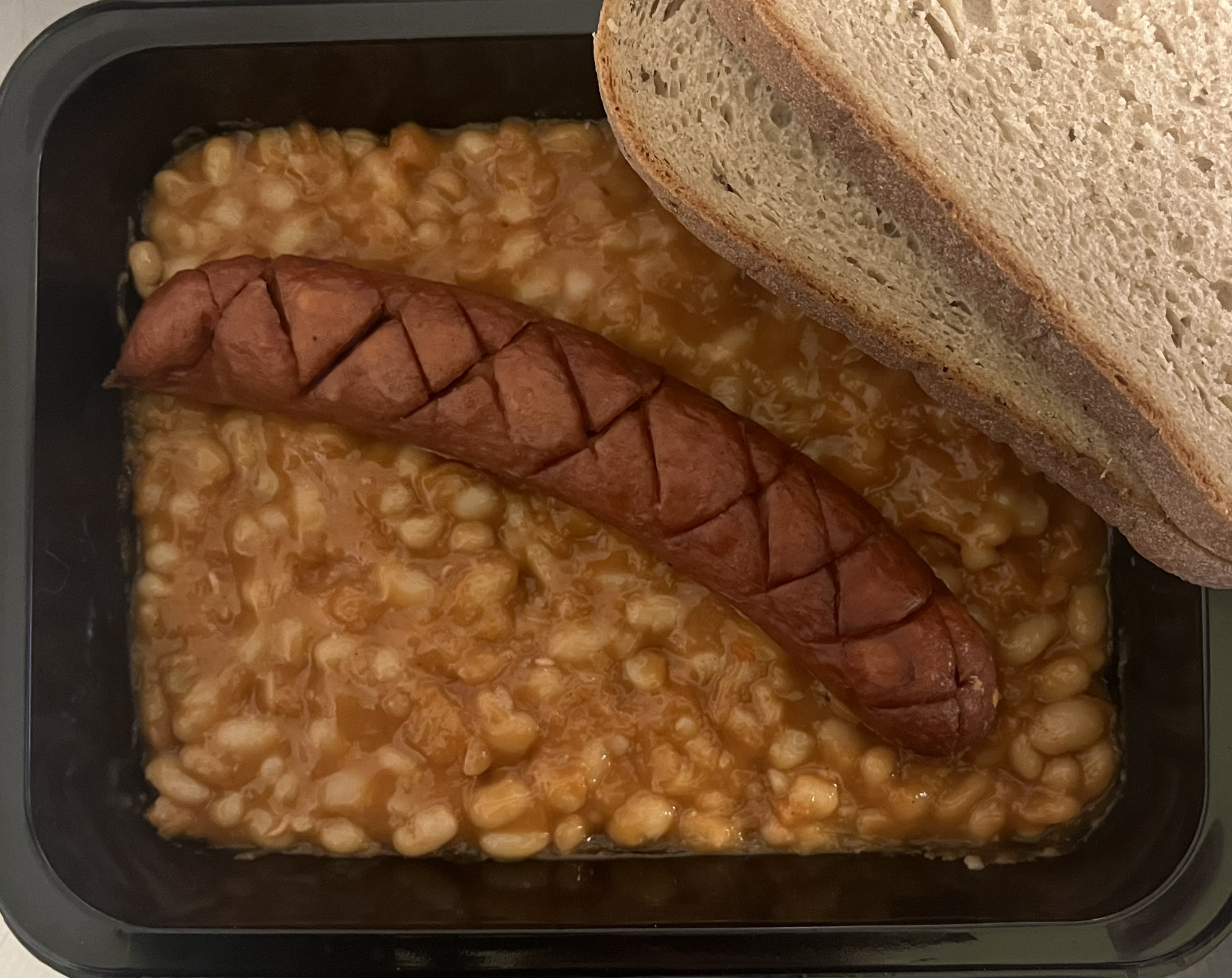 BRETAŇSKÉ FAZOLE S OPEČENOU KLOBÁSKOU, chleba (1a)