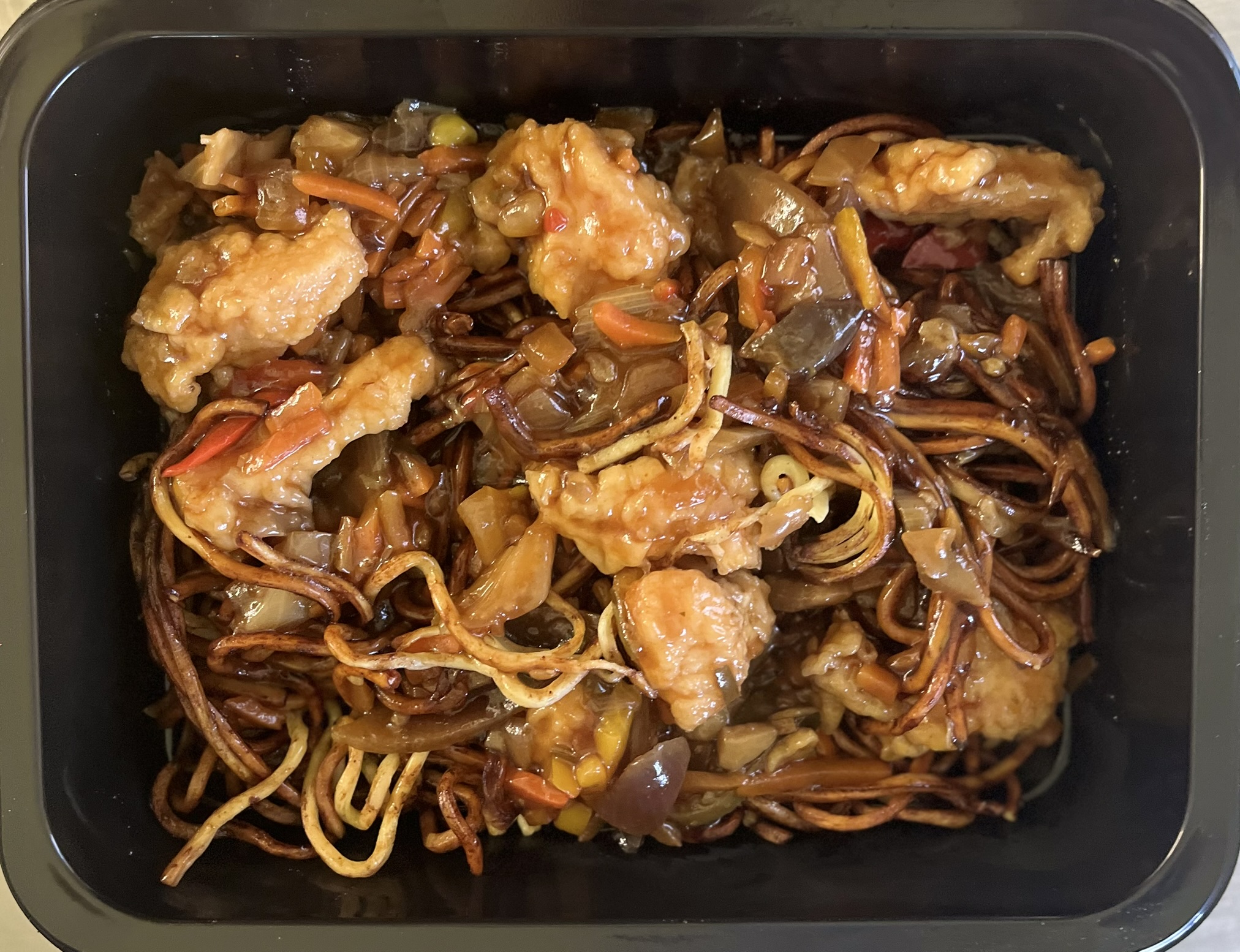 ČÍNSKÉ NUDLE S KUŘECÍMI NUDLIČKAMI A ZELENINOU (1a,3,5,6)