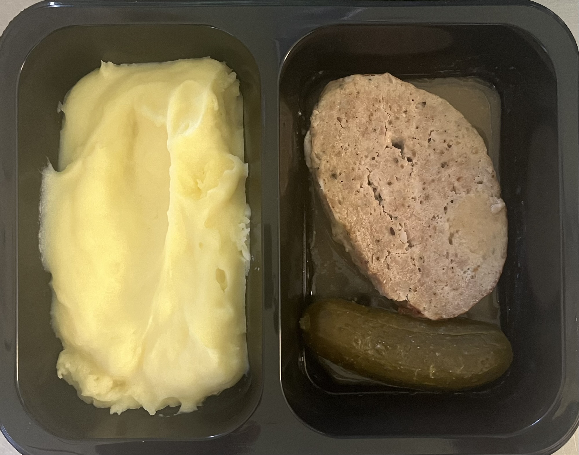 DOMÁCÍ SEKANÁ, okurek, bramborová kaše (1a,3,7)